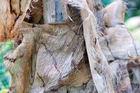 Close-up of hemp, brown fibers with gaps between fibers, high magnification, super macro.