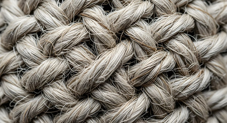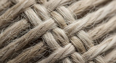 This close-up image captures the intricate texture of braided natural fibers, showcasing the craftsmanship and organic elements ideal for rustic decor or textile design.