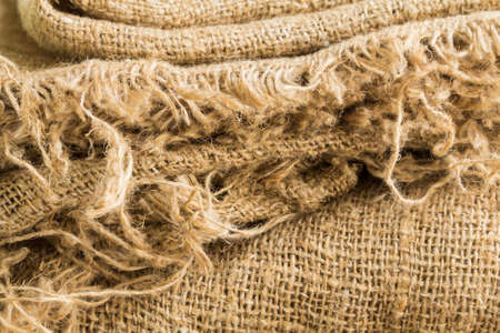 Natural fabric texture, frame and background of burlap. Rough crumpled burlap background. selective focus