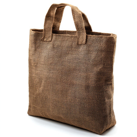 This image features a simple jute bag on a light background, ideal for promoting eco-friendly shopping and sustainable lifestyle choices in marketing materials.