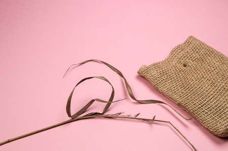 Full sack on pink background with copy space, top view