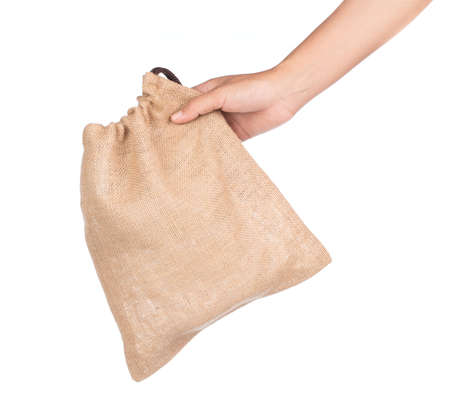 Anything in burlap sack isolated on white background with empty space.