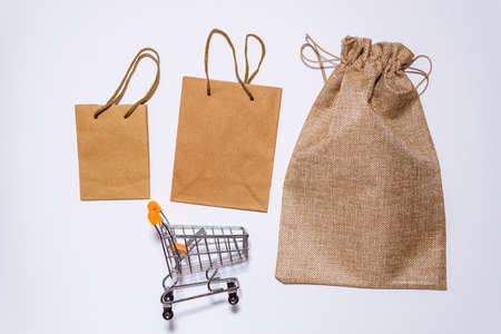 craft bags on a light background with space for text, shopping concept.