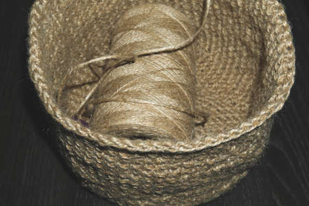Jute needlework. handmade knitted basket