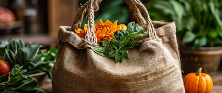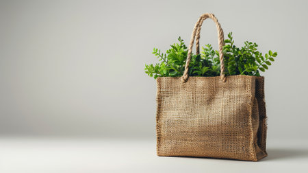 Eco friendly bag design, made of sustainable natural fibers like cotton, jute, or hemp. Reusable shopping tote promotes a green lifestyle and zero waste living.