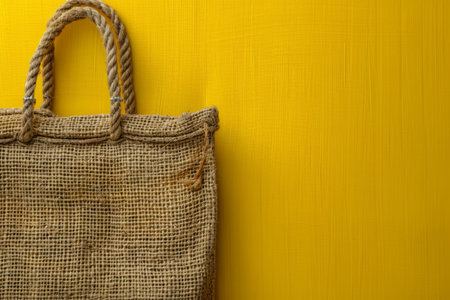 small brown burlap bag on yellow