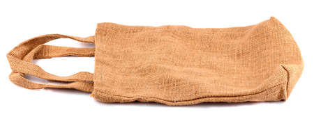 Burlap textile sack close up isolated on white background