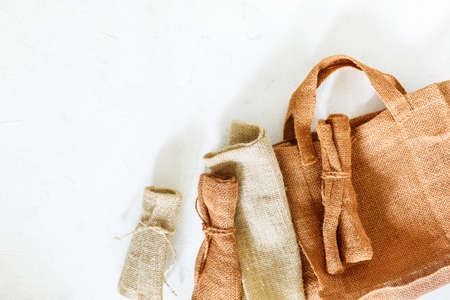 Canvas bags on a light background with a copy space.