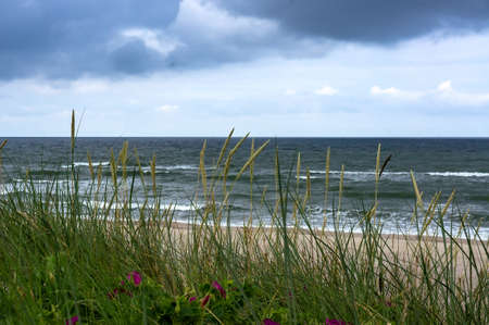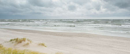 Baltic sea beach with dunes and ocean view. Holiday background.