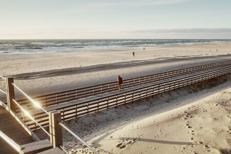 A beautiful shot of a wooden staircase leading to a touristic beach in Denmark