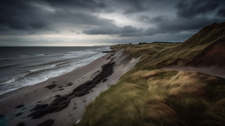 AI Generated. Coastal Landscape with Grey Rocks and Grasses