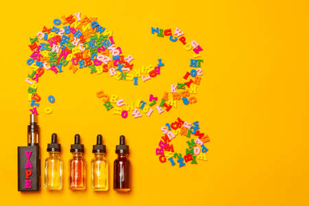 The inscription VAPE. Liquid for electronic cigarettes. Concept with electronic cigarettes. Replacement of cigarettes with electronic cigarettes.
