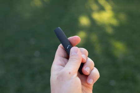 MOSCOW - 26 June 2020: Juul e-cigarette nicotine vapor stick and pods.
