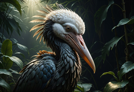 Highdetail graphic of a lesser adjutant stork, showcasing its natural colors and textures