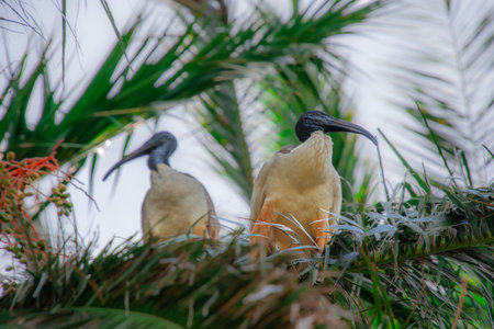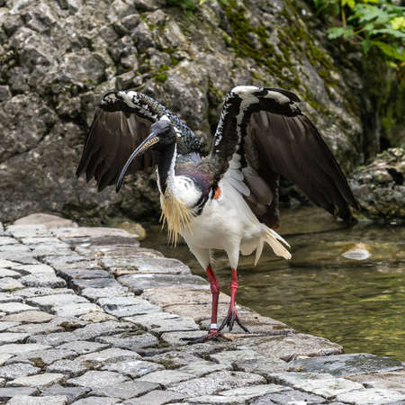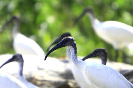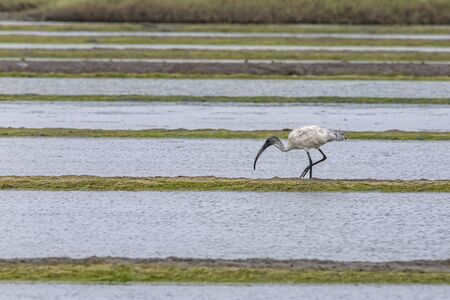 Sacred ibis, Threskiornis aethiopicus near the lake in national park in izmir turkey.