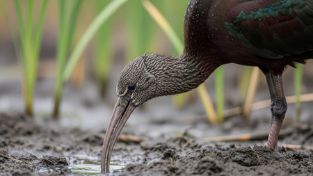 Glossy Ibis (Plegadis falcinellus) Wading Bird Wildlife Scene