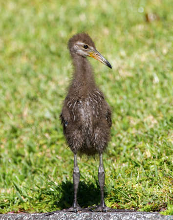 limpkin (Aramus guarauna), also called carrao, courlan, and crying bird, feeding on snails in a public park in Buenos Aires