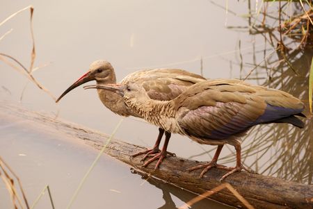 Pretty specimen of ibis perched on the edge of a river in South Africa
