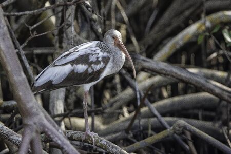 Juvenile White Ibis (Eudocimus albus) perched on a dead branch - Jekyll Island, GA