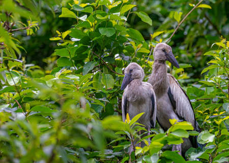 Wood stork (Mycteria americana), large American wading bird in the family Ciconiidae. Refugio de Vida Silvestre Cano Negro, Wildlife and bird watching in Costa Rica.