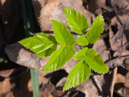 Aegopodium podagraria bishop's weed small leaves macro, selective focus, shallow DOF.