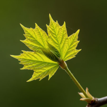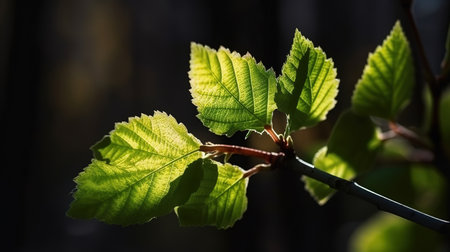Delicate Beauty of Spring Illuminated Foliage with Soft Light Showcasing Vibrant Verdant Details