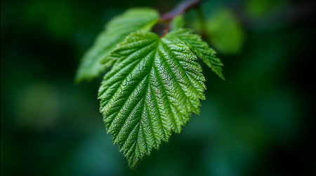 Vibrant Green Leaf Veins Detail Against Muted Natural Background Scene