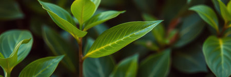 Close-up of vibrant green leaves in natural sunlight, nature and freshness concept
