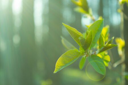 Fresh green leaves and branch of tree, Beautiful leaves green foliage.