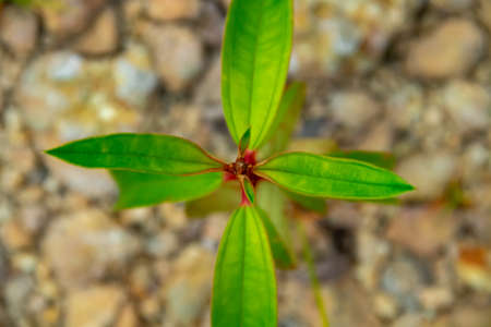 Top down shot of a plant called False buttonweed ,Foliage, Selective Focus, Moody Theme.