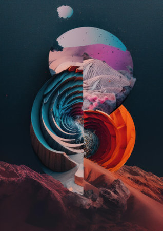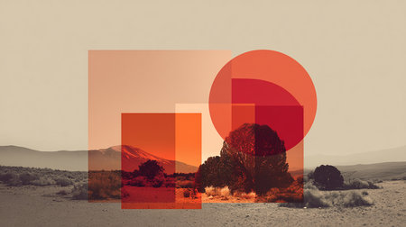 This vibrant image features a striking arrangement of geometric shapes in various colors on a bold split background, perfect for artistic themes and modern design projects.