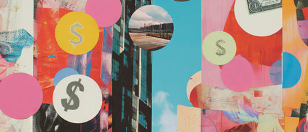 Exploring corporate aesthetics through a colorful mixed media collage
