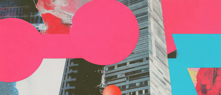 Minimalistic mixed media collage showcasing vibrant textures and urban lifestyle elements
