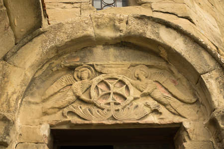 Jvari Monastery exterior fragment, it is a sixth-century Georgian Orthodox monastery located on the mountain peak near Mtskheta, Georgia.
