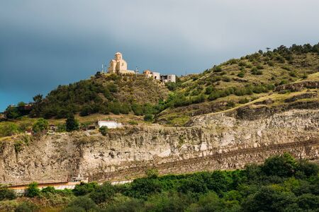 View of Jvari Monastery in Mtskheta. Travel to Georgia. Religion