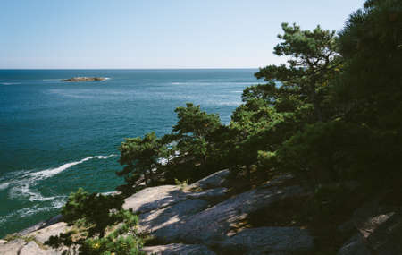 Cliffs and view of the Atlantic Ocean in Acadia National Park, Maine.