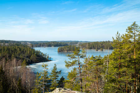 Beautiful landscape with icy lake in the national park Repovesi, Finland