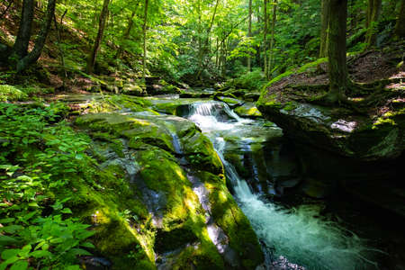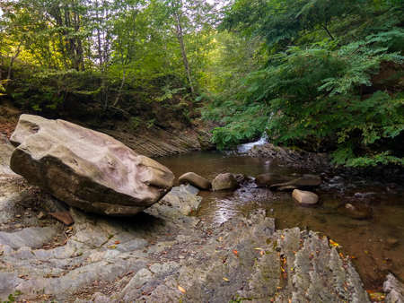 Stream in the forest. Beautiful nature scenery with a river and rocks