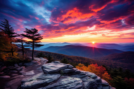 Witness the breathtaking sunset over Mount Greylock, where vibrant colors illuminate the sky and the peaceful landscape stretches into the distance.