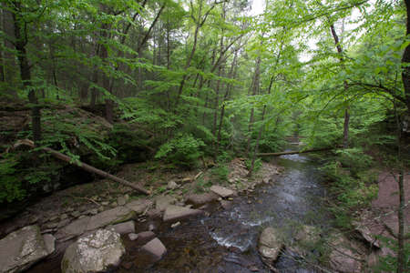 Water cascading through rocky outcropping leaving deep cuts in the rocks over the years on Pleasant Stream, PA.
