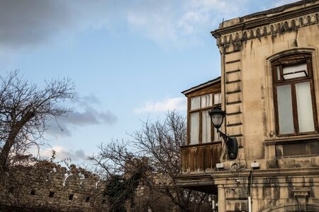 Empty street in old city of Baku, Azerbaijan. Old city Baku. Inner City buildings. Early spring time