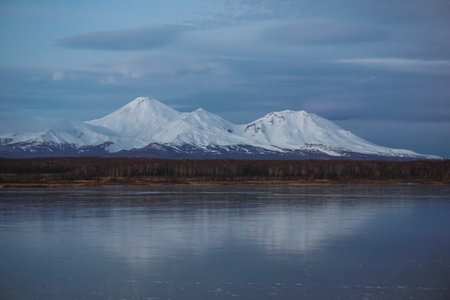 View of the Volcanoes in Petropavlovsk-Kamchatsky in Kamchatka