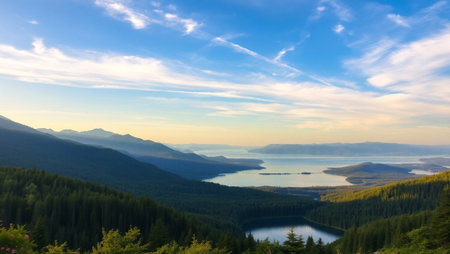 Beautiful Panoramic view of Canadian Mountain Landscape during a vibrant summer sunset. Taken at Mt Arrowsmith, near Nanaimo, Vancouver Island, BC, Canada.