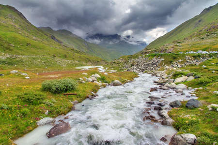Beautiful valley and peaks in Caucasus mountains, the Main Caucasian ridge. North Caucasus