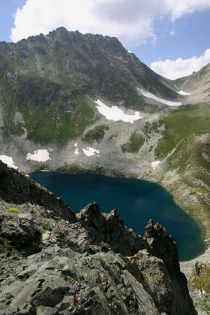 large cold lake high in the caucasus mountains