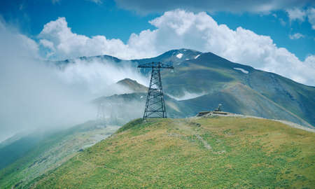 Mountain landscape with fog in the morning. Caucasus Mountains, Georgia.