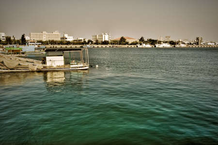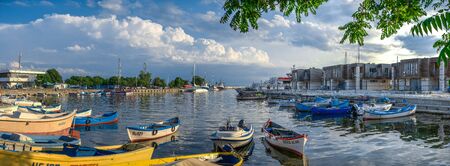 Panoramic view of the water area of the bay of the seaside town of Pomorie. Bulgaria.