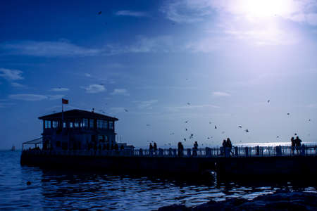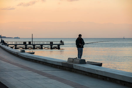 ISTANBUL, TURKEY, October, 26, 2014: People are fishing on Marmara sea quay in Bakirkoy in Istanbul, Turkey.