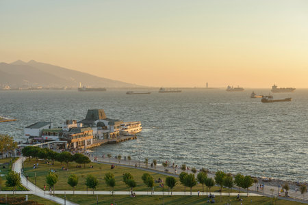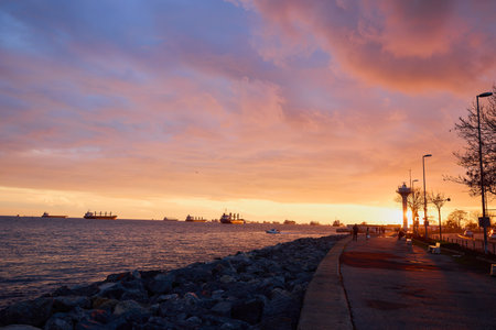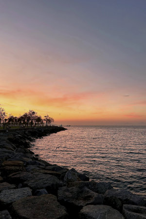 Istanbul - Turkey November 25 - 2022. Sunset on the seafront of the Marmara Sea.