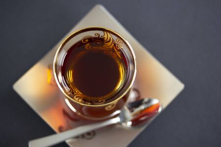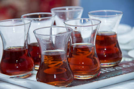 Black Turkish tea in traditional glasses. Istambul, Turkey.